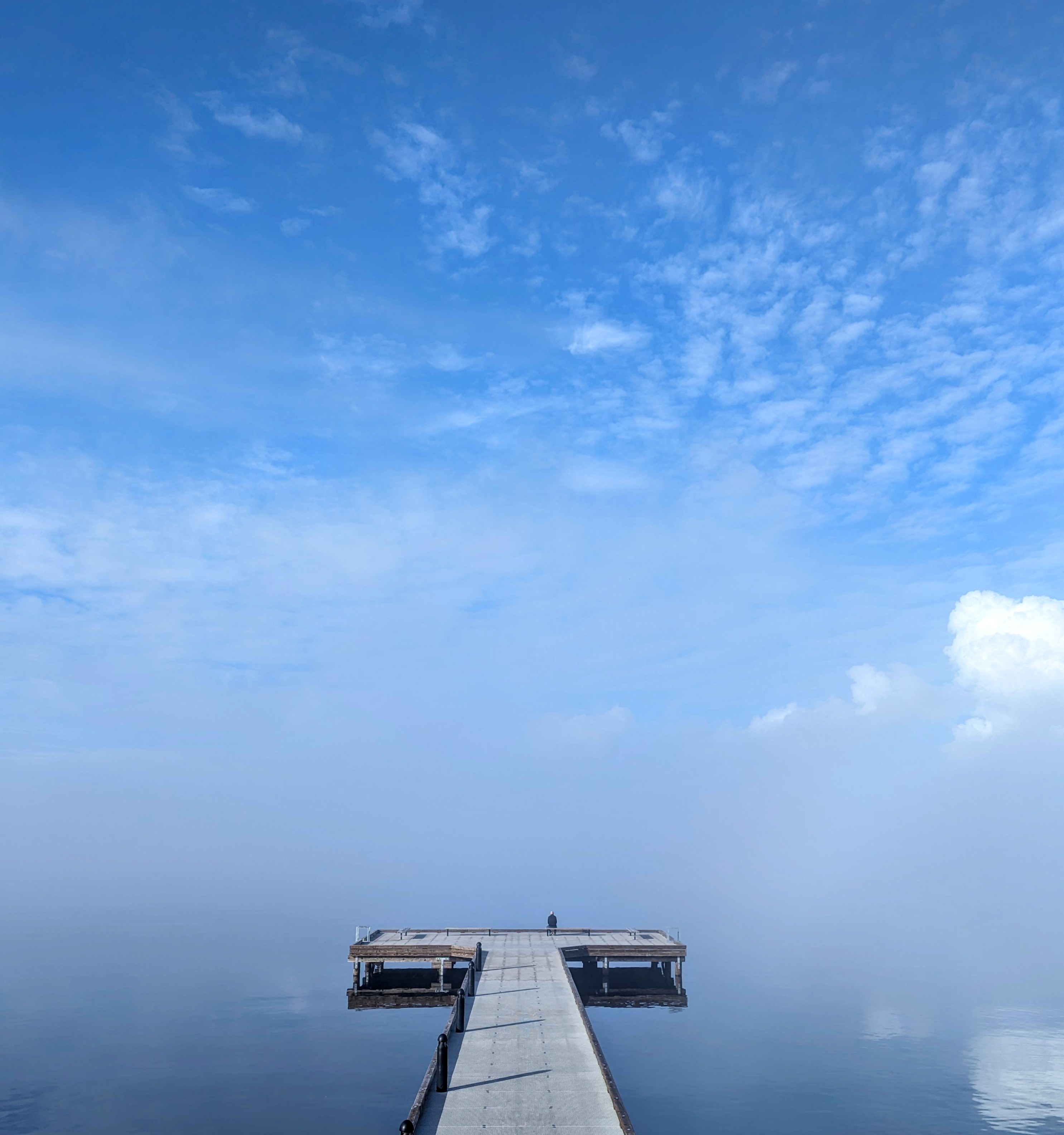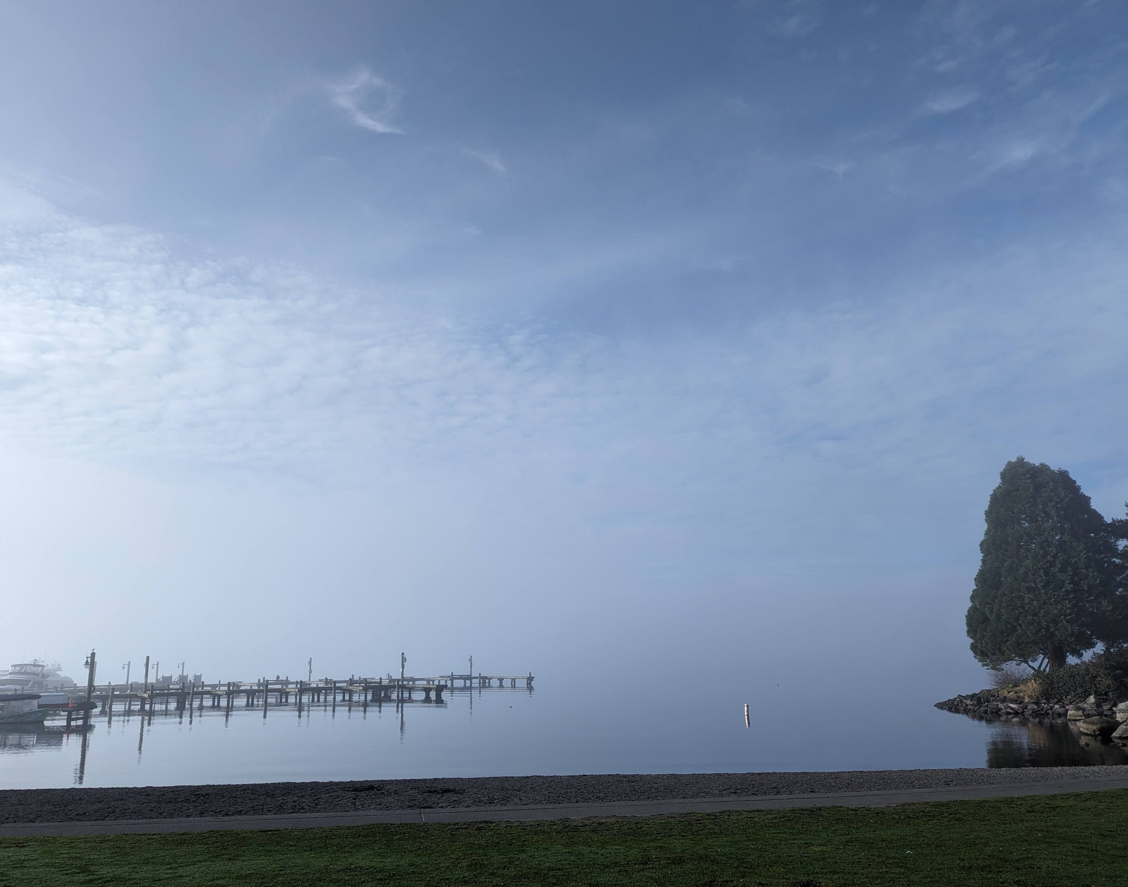 It was a cold foggy morning out. I’d never seen the lake like this; there was no discernible break between the water and the sky.
