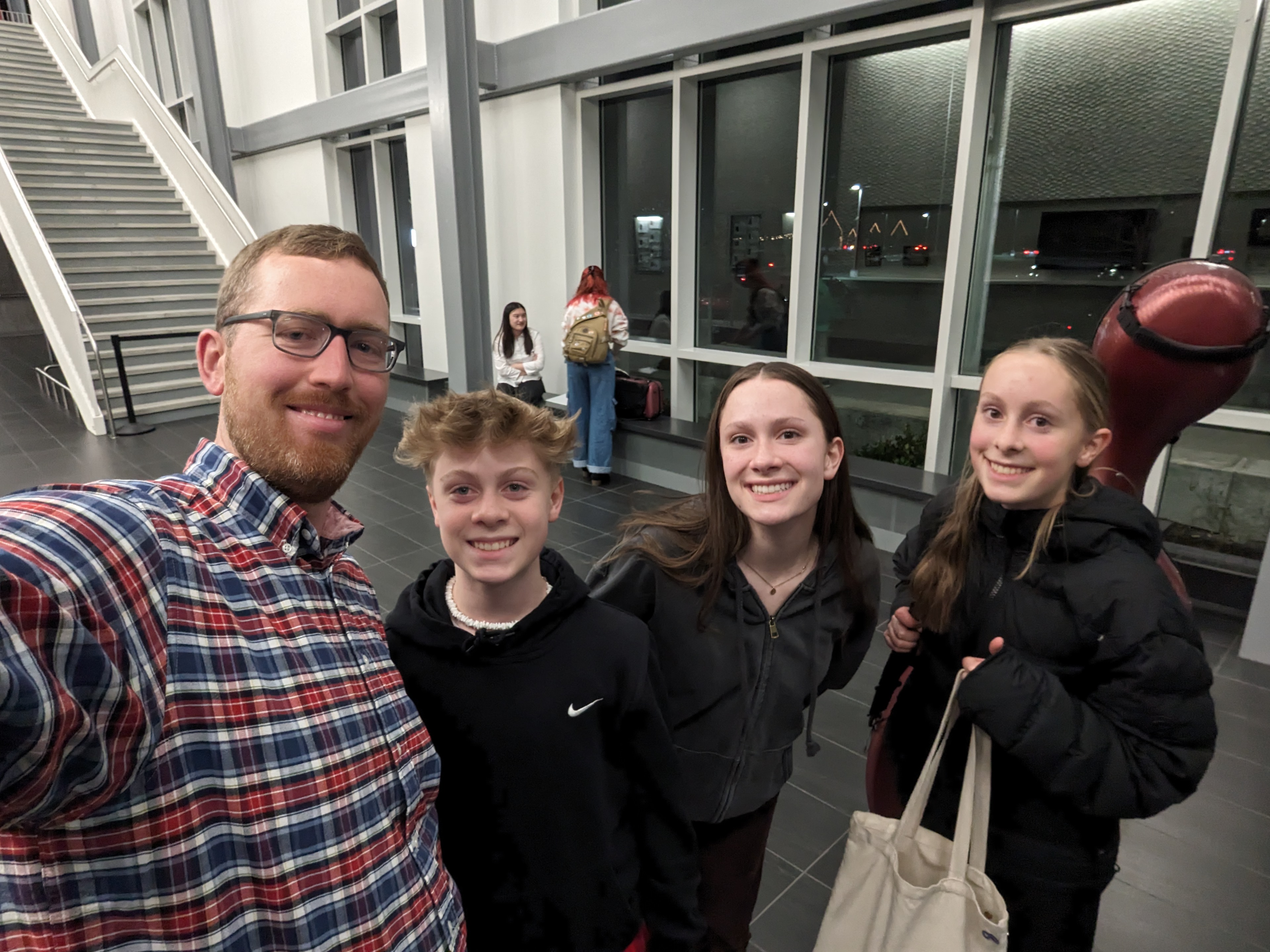 Today after church I headed out to James and Karen’s for dinner. Afterwards we played Jokers and Marbles and Kingdomino, then headed out to see Phoebe perform at a community symphony concert held at the local high school. The skills and ages ranged widely; Phoebe was in the more-skilled cohort, and I really enjoyed her group’s rendition of Debussy’s Rêverie (like this but just the string parts).