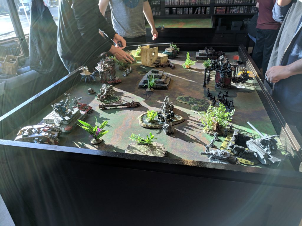 I spent the Monday holiday with some coworkers at Mox Boardinghouse, a shop/restaurant/play area for board games. You show up and they have shelves full of board games, free to play. There’s an attached restaurant, and plenty of seating area. You like the game, you can buy the game. Pretty slick business model.