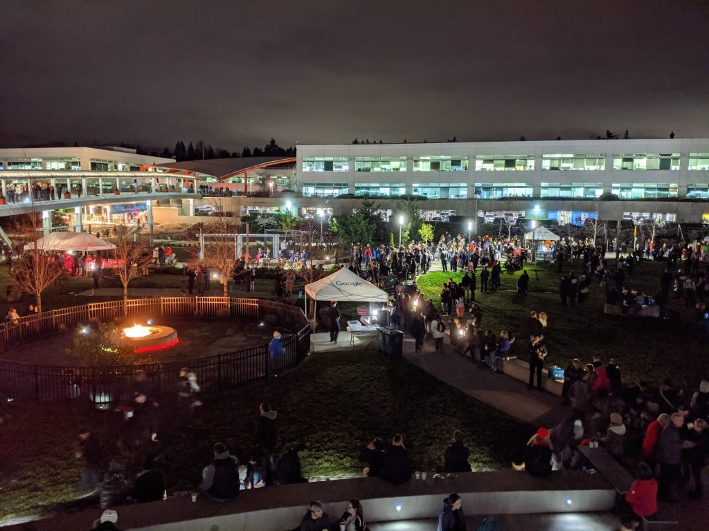 My office had their yearly “light-the-trail” party, where they set up hundreds of LEDs along the trail that runs by our buildings, time them to music, and have a big todo to officially turn them on.