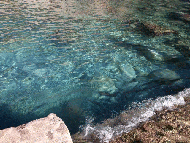 Incredibly clear water. Still not warm enough to swim in unfortunately.