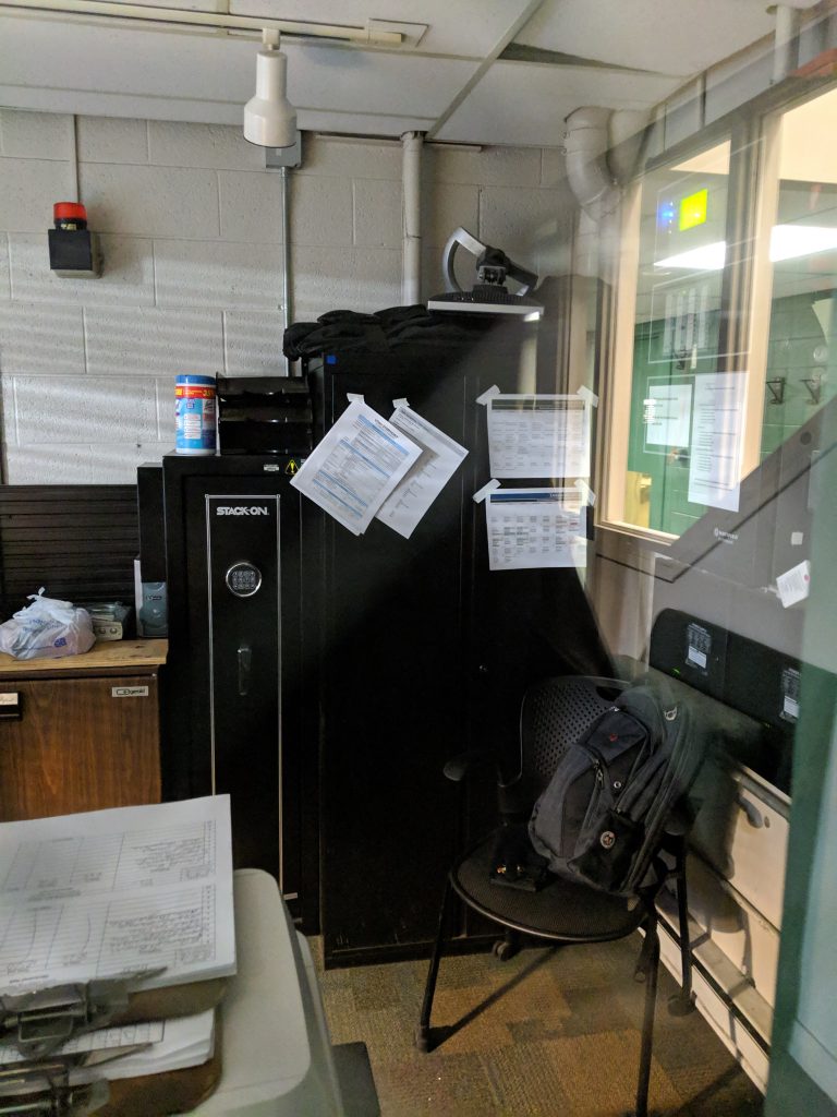 I had to find a room to take a conference call for work, and figured I could easily find a nook somewhere on campus. Unfortunately I didn’t realize it was finals prep week and every single study room was reserved. Tried all my old haunts, but no joy. Even tried sweet-talking the CS front office folks into lending me the conference room that I’d hoped wasn’t being used, but that didn’t work out. Ended up ensconcing myself in an old projector room that no one ever used.