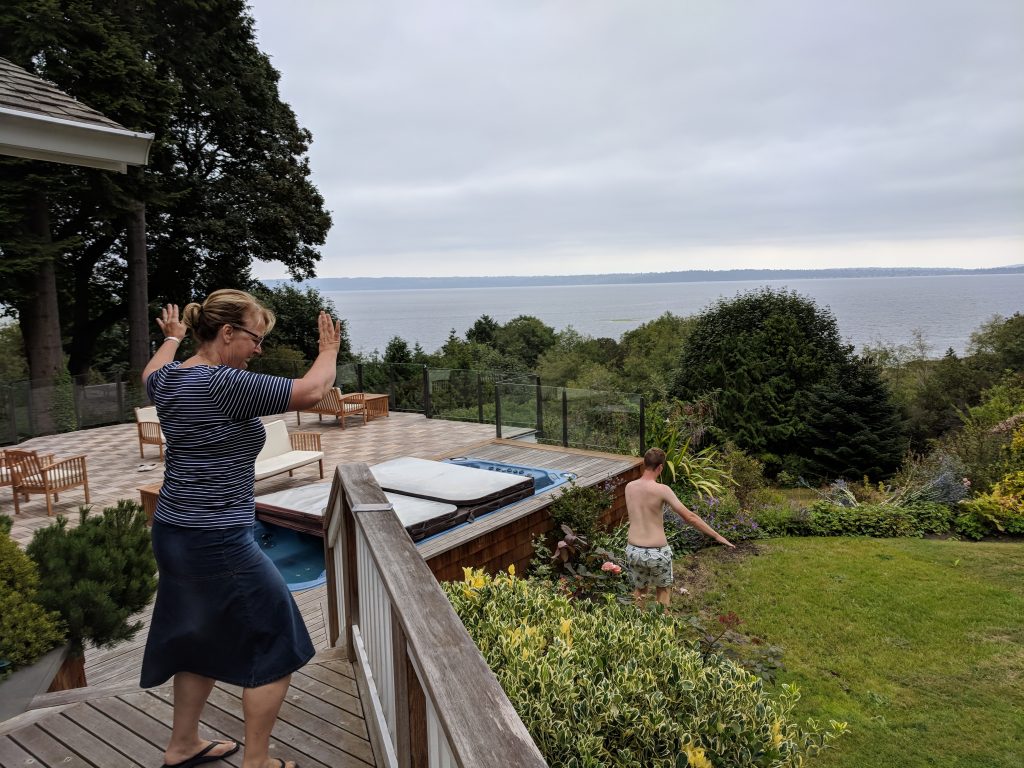 Then we busted out some paper and fuzz balls to play Poor Man’s Joker’s Wild under the gazebo.